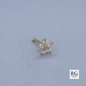 9CT YG CZ CLAW SET FLOWER NOSE BALL PIN 5MM 0.18g