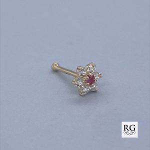 9CT YG RUBY+CZ FLOWER NOSE BALL PIN – 5MM 0.19g