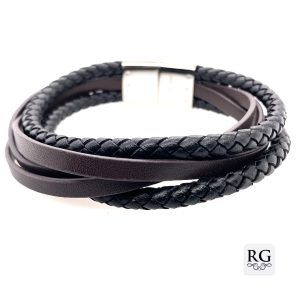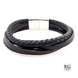 S/STEEL 2pc BL BRAIDED 3pc BR FLAT LEATHER BRAC