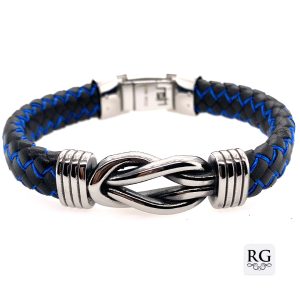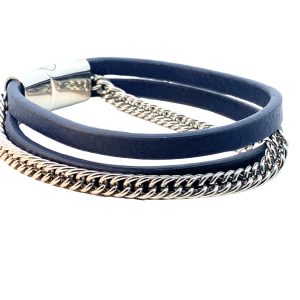 S/STEEL PLAITED CHAIN+BLUE LEATHER BRACELET