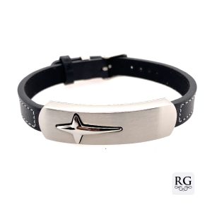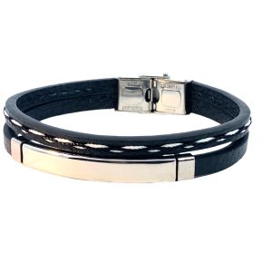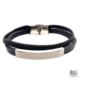 S/STEEL ID BLACK LEATHER BRACELET