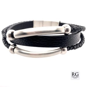 S/STEEL BLACK BARREL+LEATHER BRACELET