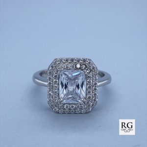 925 RECT CZ PAVE DBL HALO DRESS RING – 14MM