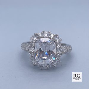 925 RECT CZ MORGANITE HALO PAVE RING – 14MM