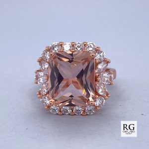 925 RG PL RECT MORGANITE CZ PAVE DRESS RING – 18MM