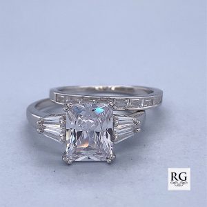 925 RECT+BAG CZ PAVE WEDDING SET RING – 11MM