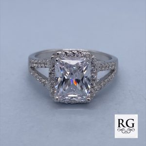 925 RECT CZ PAVE HALO SPLIT SHANK RING – 11MM