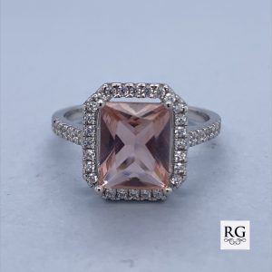 925 RECT MORGANITE CZ PAVE DRESS RING – 18MM