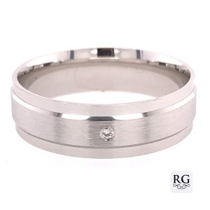 925 RH PLATED MENS WED BAND WITH DIA