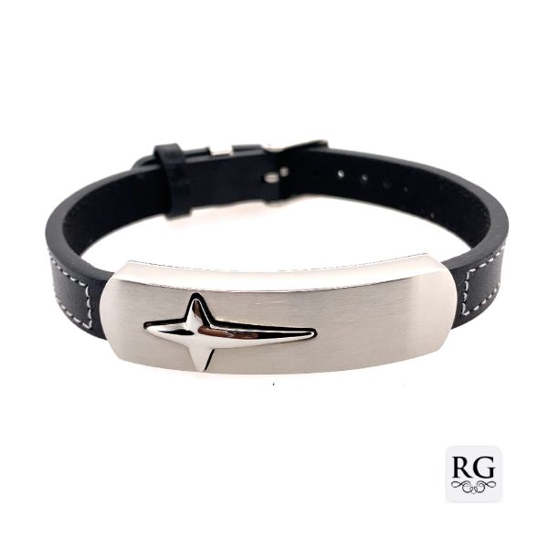 S/STEEL YG PL BLACK CARBON F PATTERN LEATHER BRACE
