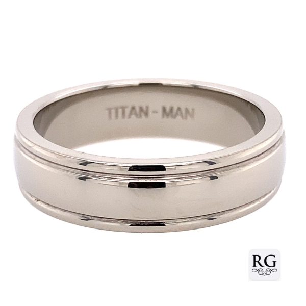 TITANIUM DBL GROOVE POLISHED RING - 6MM