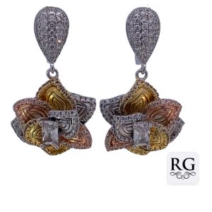 925 TRI-COLOR CZ PAVE DROP FLOWER EAR – 30X17 8.7g