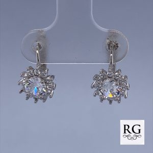 925 CZ PAVE FLOWER LEVERBACK EAR – 14X9 – 2.7g