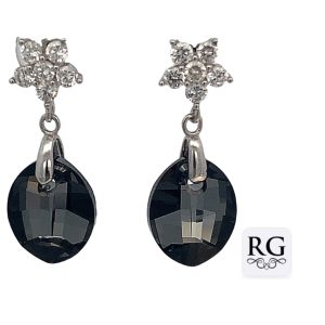 925 CZ PAVE FLOWER TDROP BLACK SWAROVSKI EAR