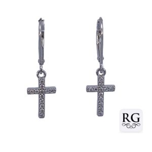 925 CZ PAVE CROSS LEVER BACK EARRINGS – 17X8 1.5g