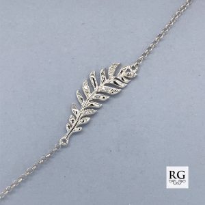 925 CZ PAVE FEATHER ON ANCHOR LINK BRACELET+EXT