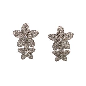 925 CZ PAVE FLOWER DBL MILLGR DROP EAR 40X7 4.85g